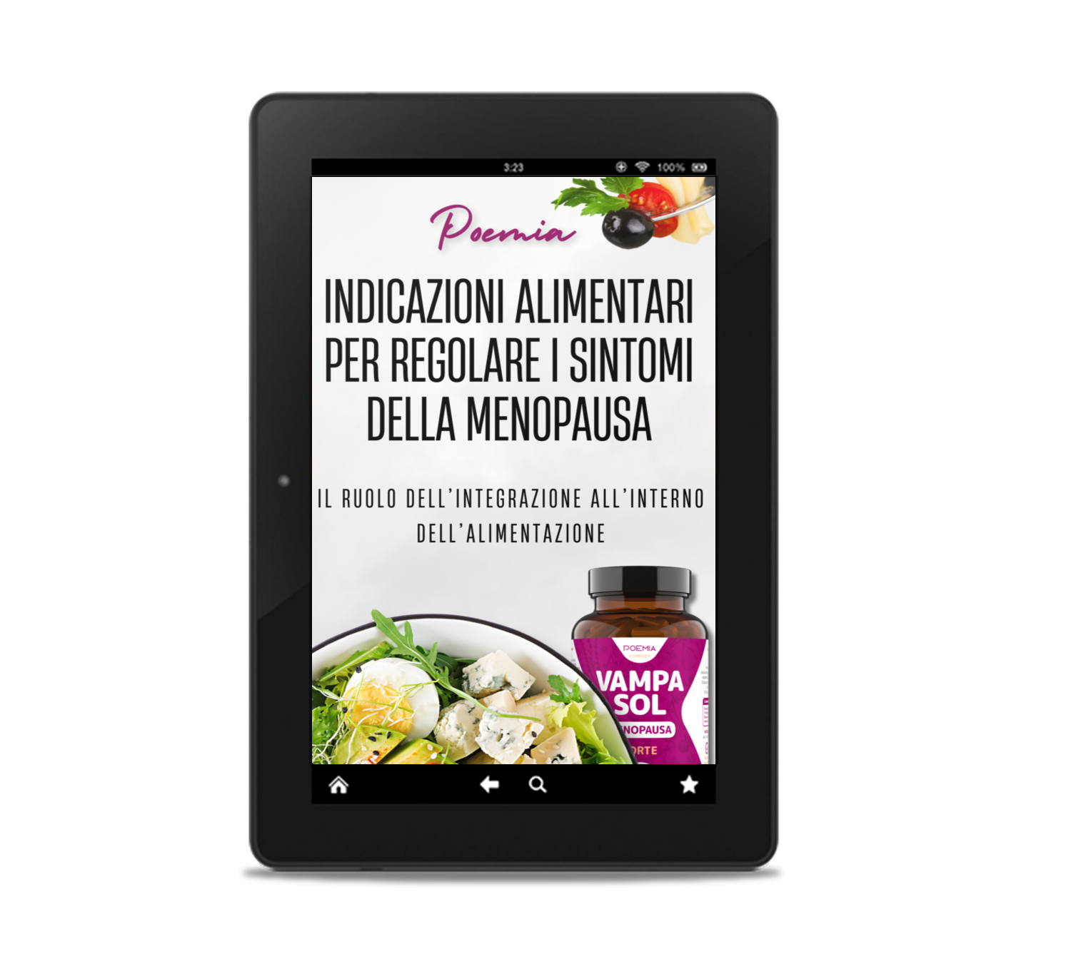 Acquistando Poemia Vampasol, ricevi la “Guida Alimentare Menopausa”, una risorsa esclusiva per comprendere fasi, sintomi e strategie nutrizionali mirate a ridurre vampate, migliorare umore, sonno e salute di ossa/capelli.